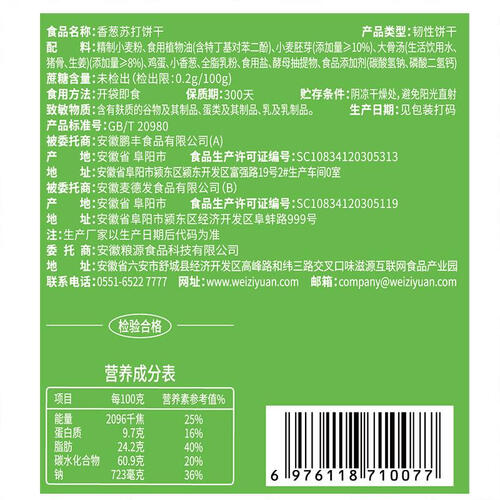 味滋源香葱味苏打饼干 早餐饼干 薄脆饼干下午茶点心休闲零食 400g*1箱