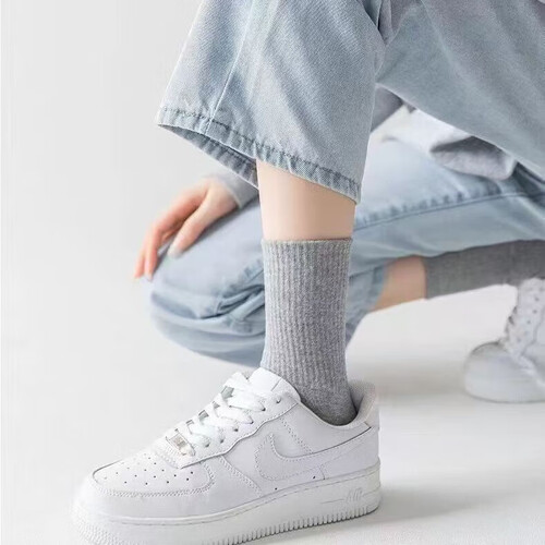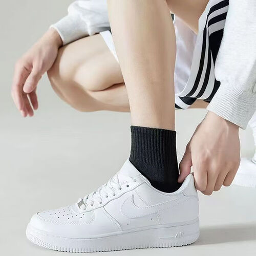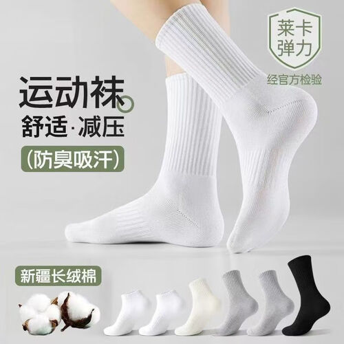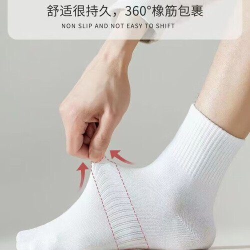 宜而爽【新疆长绒棉】袜子男士7A抗菌防臭吸汗短袜透气纯色中长筒袜秋冬 白色短筒【新疆长绒棉】5双