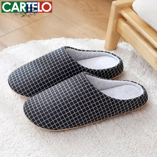 卡帝乐鳄鱼棉拖鞋男女居家冬季新款柔软厚底家居保暖室内家用情侣毛毛绒棉鞋 黑色 35 -36