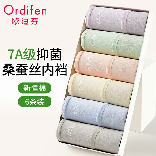欧迪芬内裤女纯棉透气舒适女士内裤夏季三角短裤衩 混色 6条 M