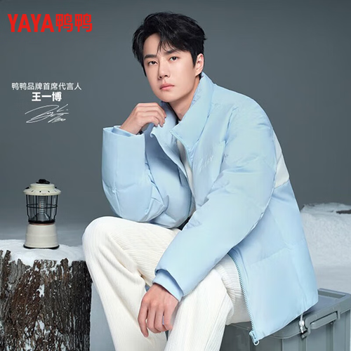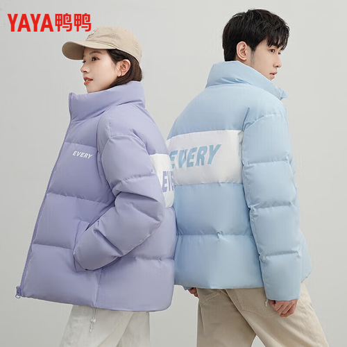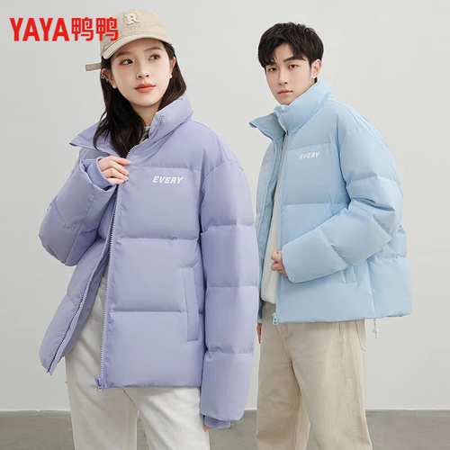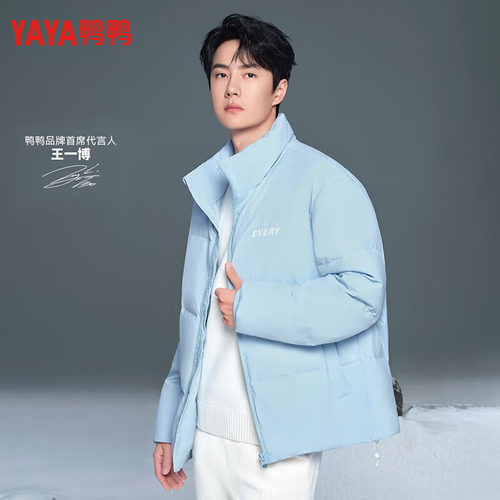 鸭鸭(YAYA)【王一博同款】情侣羽绒服2025冬季新款美拉德百搭保暖显瘦面包服 浅蓝色 S