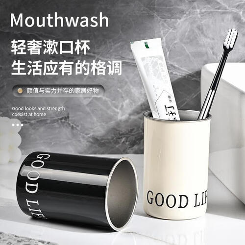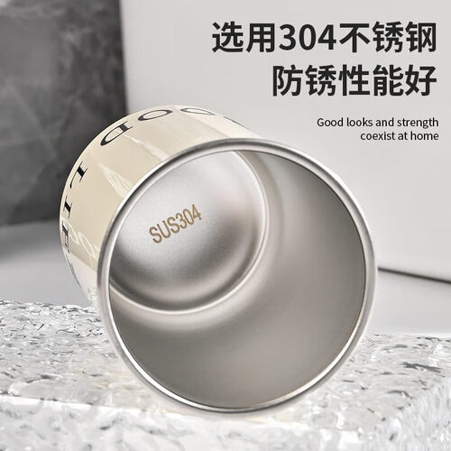 高颜值奶油漱口杯情侣家用不锈钢刷牙杯子牙具牙刷牙缸洗漱杯套装 奶白色漱口杯【304不锈钢】