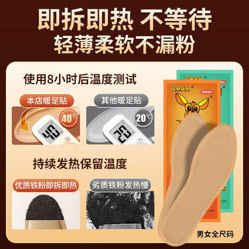 艾草发热鞋垫男女全款暖宝宝足贴保暖脚垫冬季保暖足贴艾热袋鼠 男款大码30双60只装(40-44码)