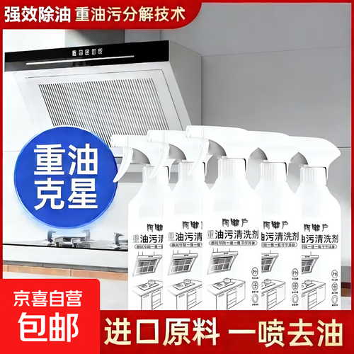 厨房油烟机清洗剂去油污强力泡沫清洁神器清洗灶台重油烟渍除油剂 5瓶装+2喷头【2500ml】