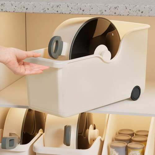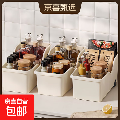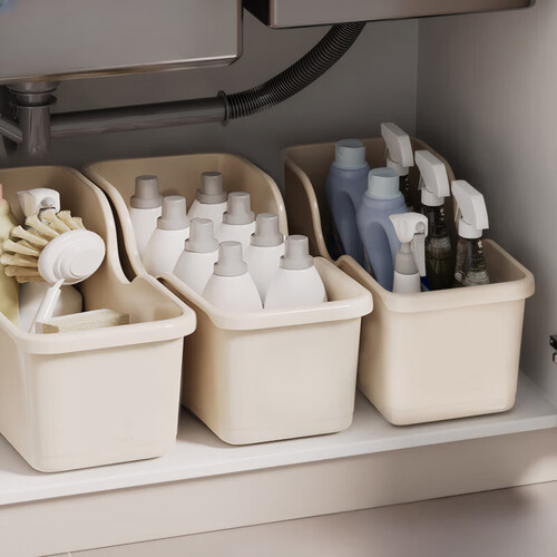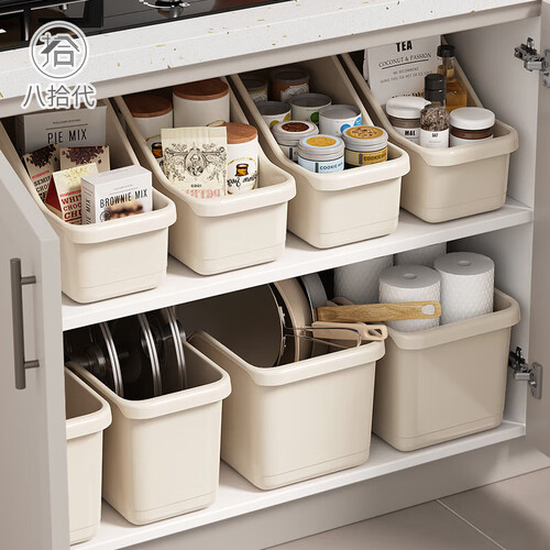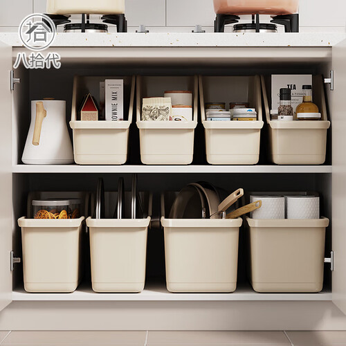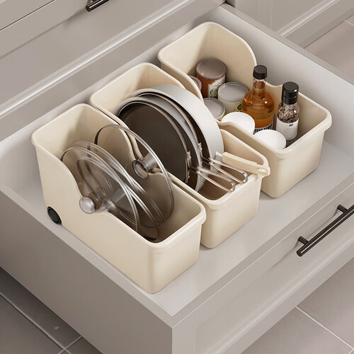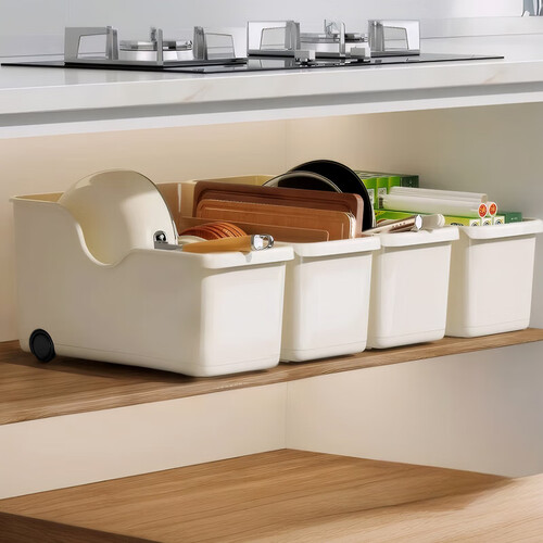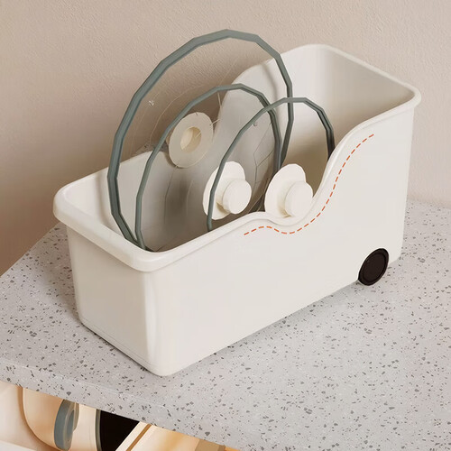 京东物流 厨房橱柜收纳盒锅架厨具收纳筐带滑轮下水槽杂物储物盒 象牙白 2个 大号40*19*22cm