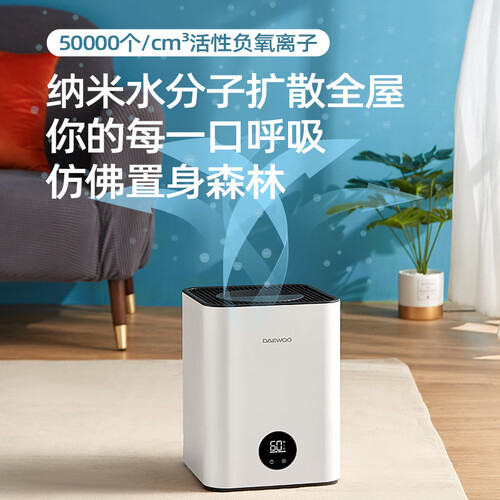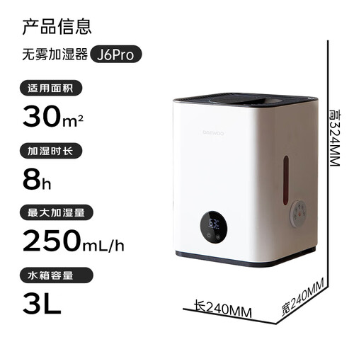 - 大宇【超好用】加湿器卧室无雾加湿空气加湿器净化除菌恒湿上加水智能办公室母婴 大宇无雾智能加湿器(J6pro) 250mL/h