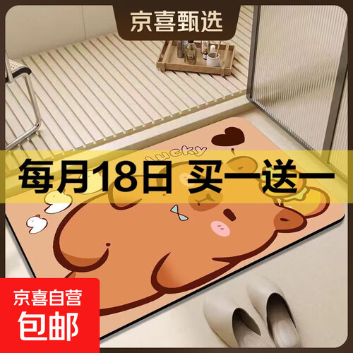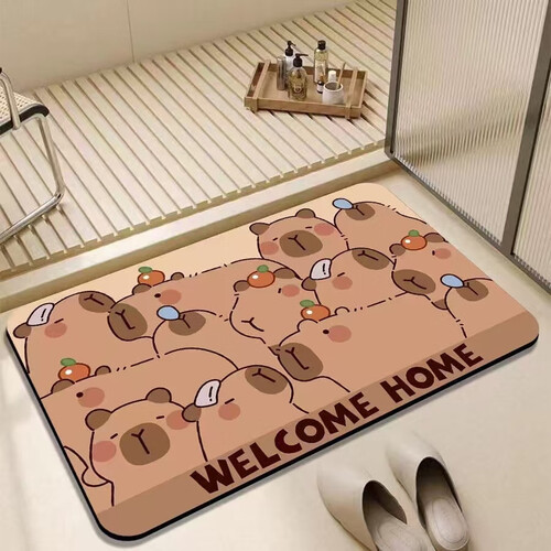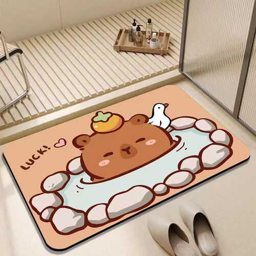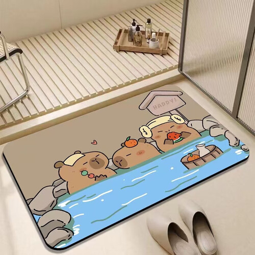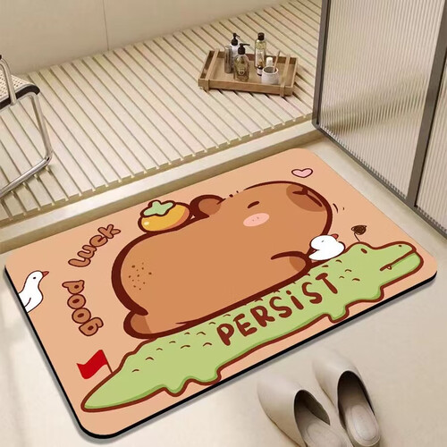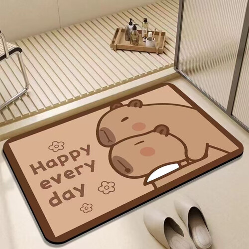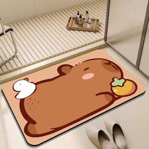 - 浴室硅藻泥卡通吸水卡皮巴拉地垫家用卫生间卧室耐脏防滑加厚脚垫 卡皮巴拉休息-硅藻泥 45*70cm