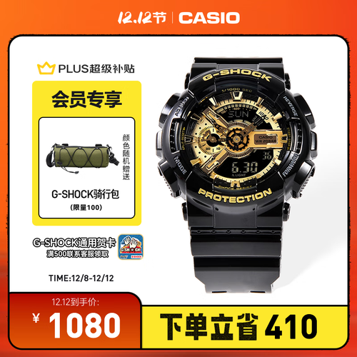 卡西欧(CASIO) G-SHOCK 卡西欧黑金运动男士手表石英电子表送男士友礼物礼物 GA-110GB-1APR-200米防水