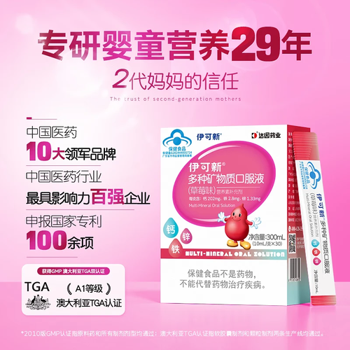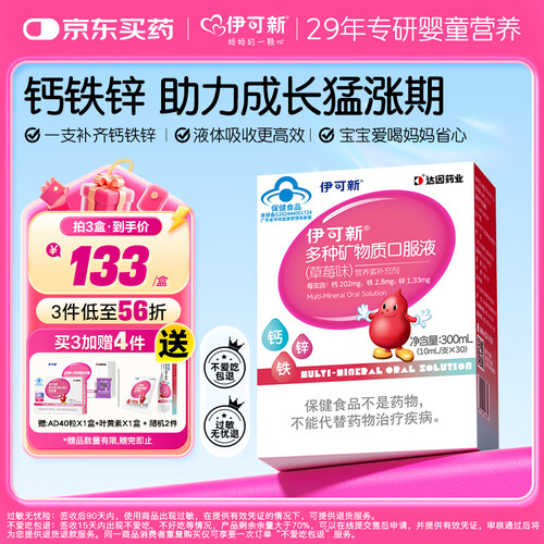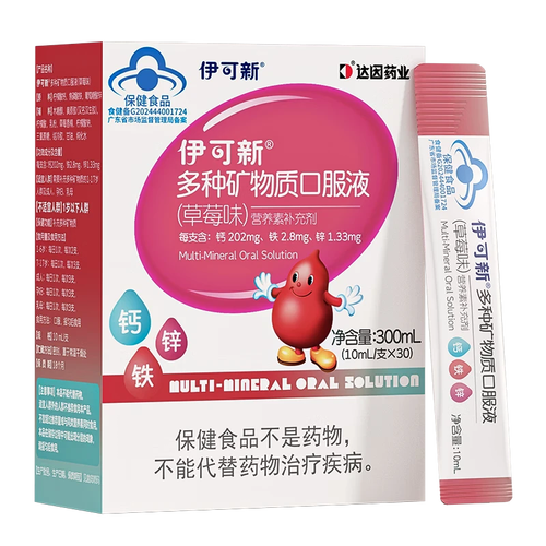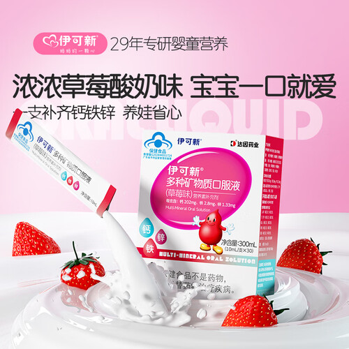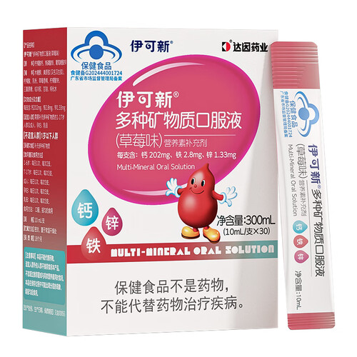 伊可新钙铁锌口服液 儿童青少年液体钙 葡萄糖酸锌口服液 10ml/条 【3件更划算】钙铁锌草莓味 30支*1盒