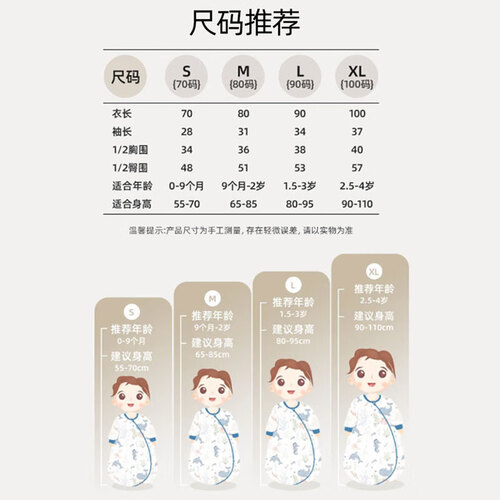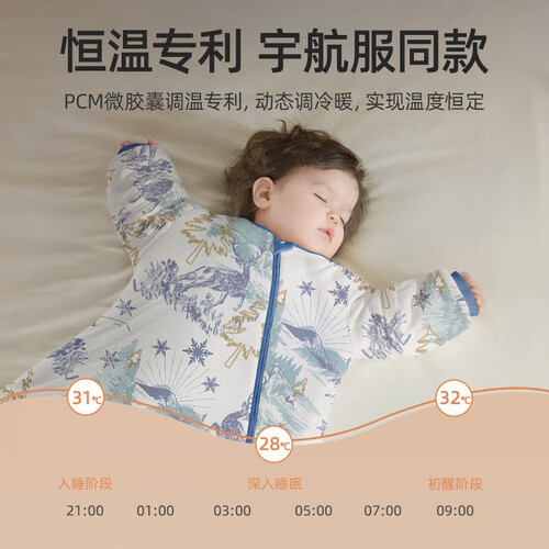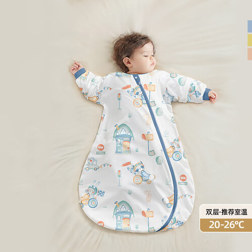 贝肽斯肽柔婴儿睡袋秋冬儿童防踢被恒温一体感温标识四季宝宝防惊跳包被 春秋双层-感温(20-26℃)飞驰 S码 55-70cm(建议0-9个月)