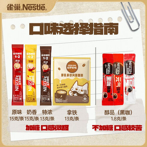 - 雀巢(Nestle)混合咖啡原味特浓拿铁奶香醇品速溶办公健身学习必备 [30条送杯]醇品15+拿铁10+原味5