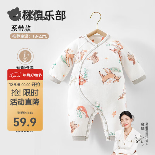 - 贝肽斯婴儿睡衣春季连体衣纯棉宝宝哈衣新生儿衣服 森林俱乐部-偏襟 52cm