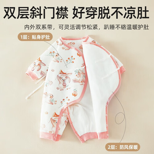 贝肽斯婴儿睡衣春季连体衣纯棉宝宝哈衣新生儿衣服 森林俱乐部-偏襟 52cm