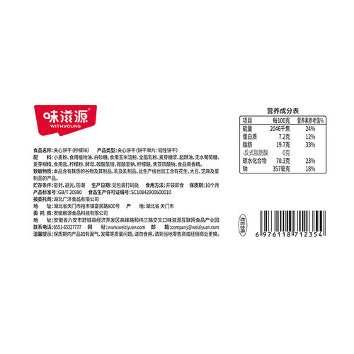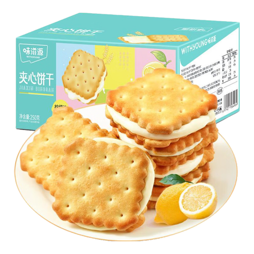 味滋源 柠檬夹心饼干 注心饼干 怀旧休闲零食 独立包装 250g/箱 1箱装