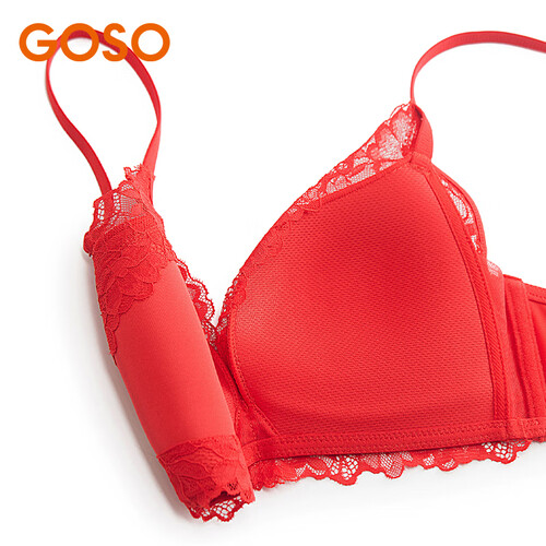 - GOSO内衣女舒适无痕小胸聚拢型文胸女 1412001大红色(中厚杯) 70A