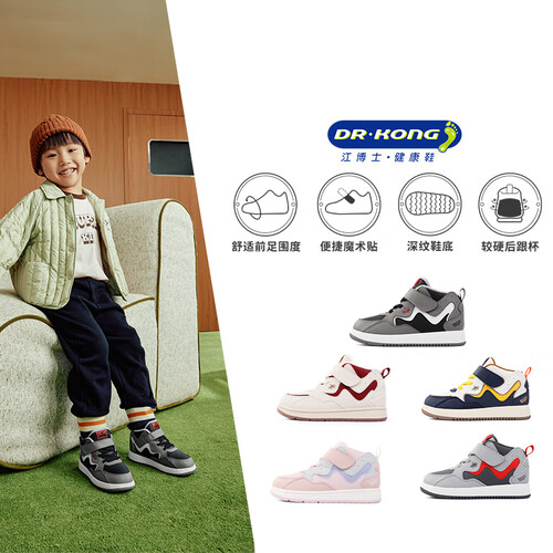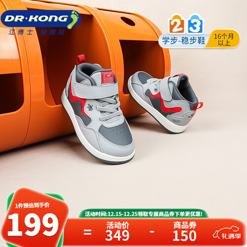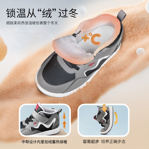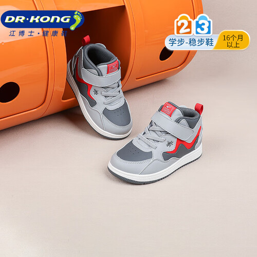 - 江博士秋冬男女童拼色保暖学步鞋 户外休闲魔术贴儿童运动鞋 灰/红 23 脚长约13.4-14.1
