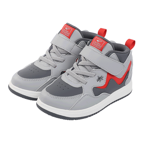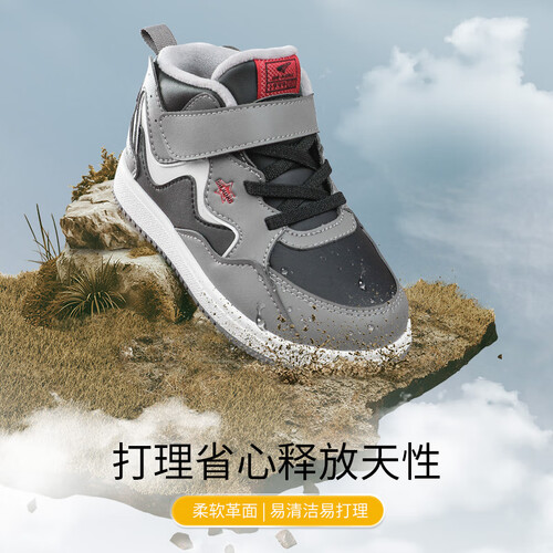 江博士秋冬男女童拼色保暖学步鞋 户外休闲魔术贴儿童运动鞋 灰/红 23 脚长约13.4-14.1