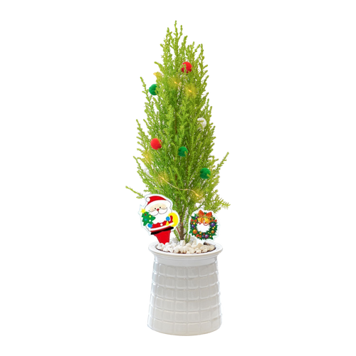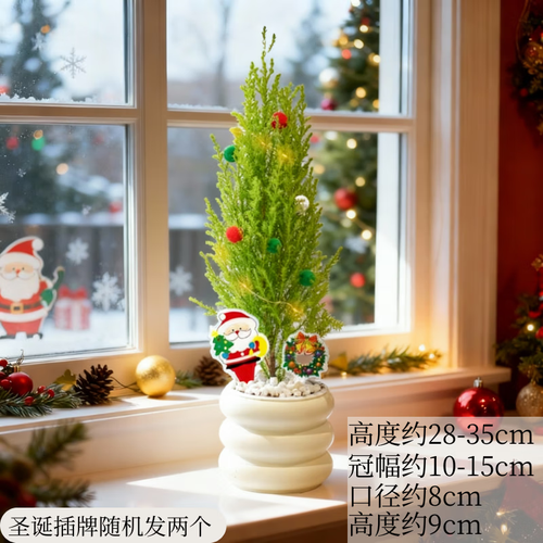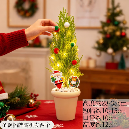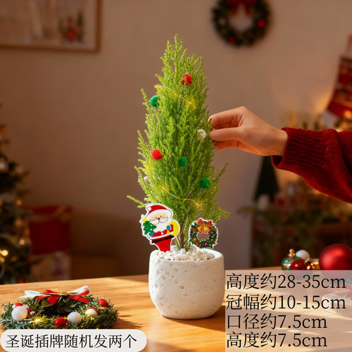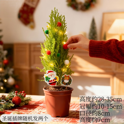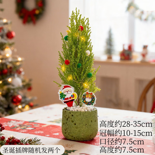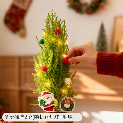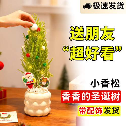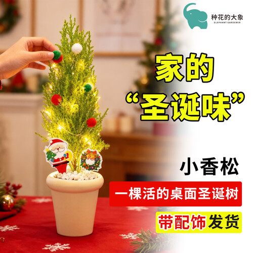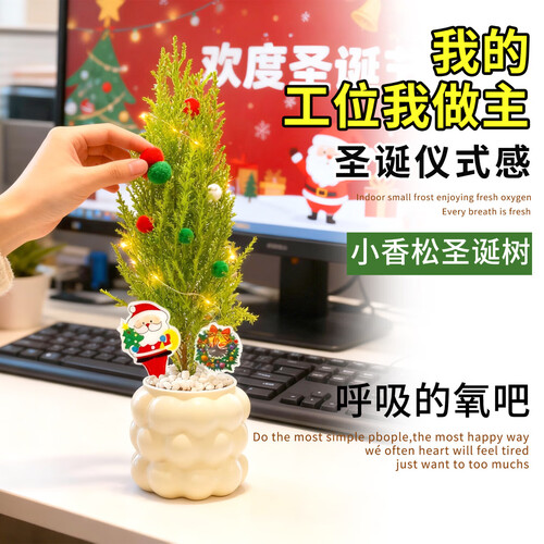 小香松圣诞树桌面摆件耐寒易养四季常青礼物好物 圣诞香松+三层泡泡树脂吸水盆+灯珠配饰