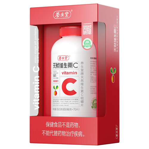 养生堂天然维生素c咀嚼片vc增强免疫力 巴西针叶樱桃 搭维生素e b族vevb VC70片