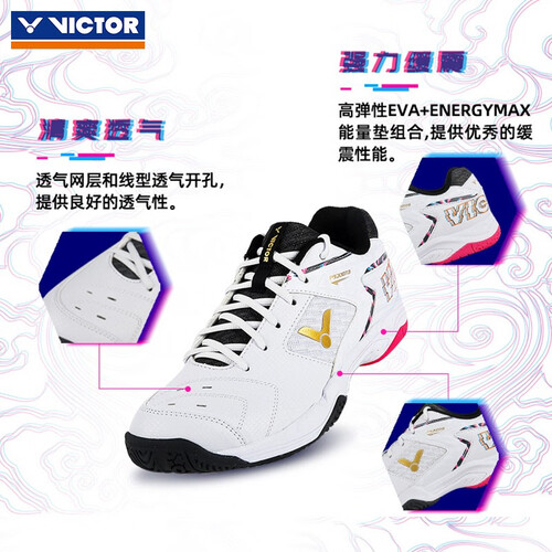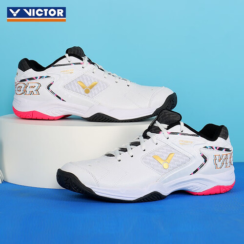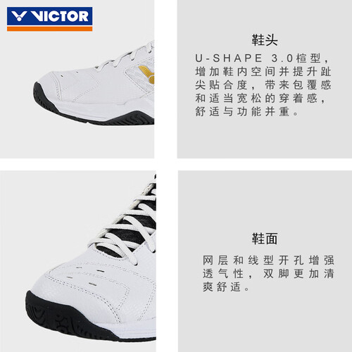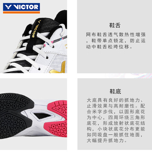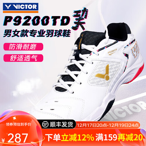 威克多(VICTOR)胜利专业羽毛球鞋男女训练比赛运动鞋宽楦减震透气防滑耐磨9200td P9200TD巭AH-亮白/深青玉灰+赠品 36