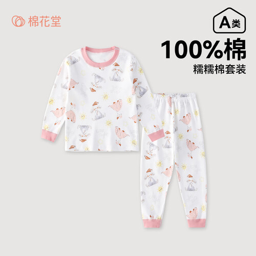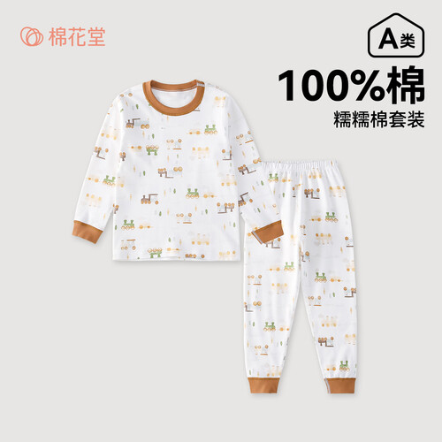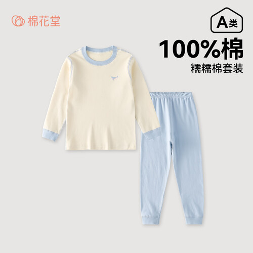 棉花堂【100%棉】儿童纯棉内衣套装宝宝家居服睡衣抗菌不易起球xt 蓝色(建议拍大一码) 90