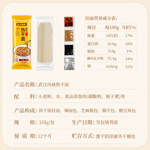 巨香 地道武汉风味热干面 方便面速食碱水面干拌面挂面条 【健康非油炸】热干面 155g*5袋