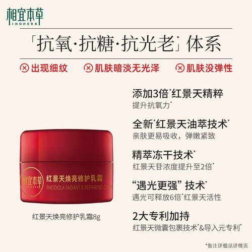 相宜本草红景天焕亮焕白精致礼包(水乳精华液修护乳霜面膜)试用护肤品