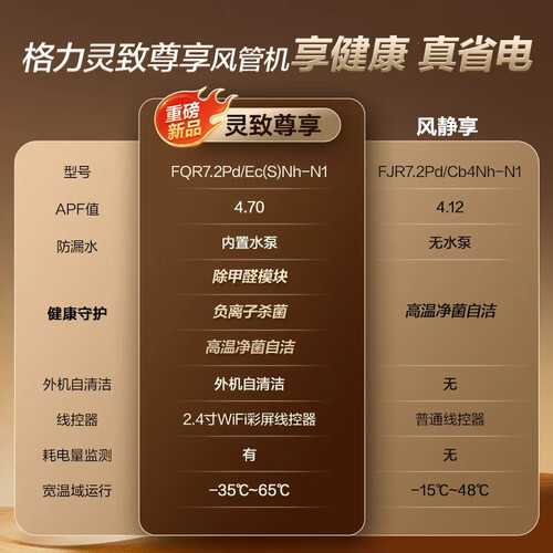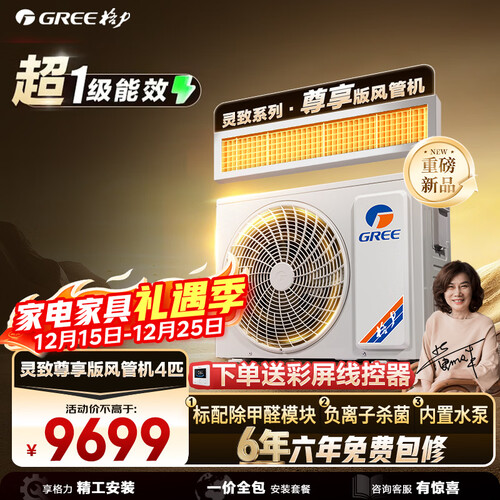 格力中央空调 风管机 灵致尊享小4匹 一级能效 一价全包 除甲醛 内置水泵 精工安装