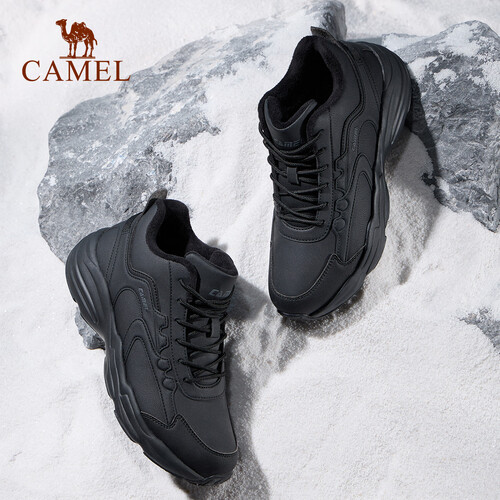 骆驼(CAMEL)凌风2.0加绒中高帮休闲男鞋保暖防水户外徒步百搭鞋2025秋冬新款 K15C363048,黑/深灰,男 38