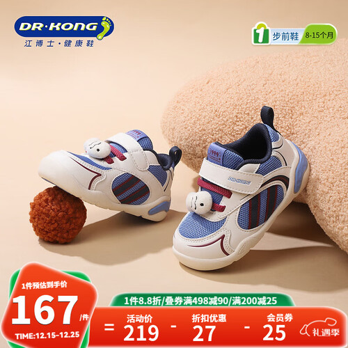 江博士(DR·KONG)冬季男女童宝宝步前鞋软底轻便透气婴儿鞋幼儿鞋 米/蓝 19 脚长约10.7-11.3