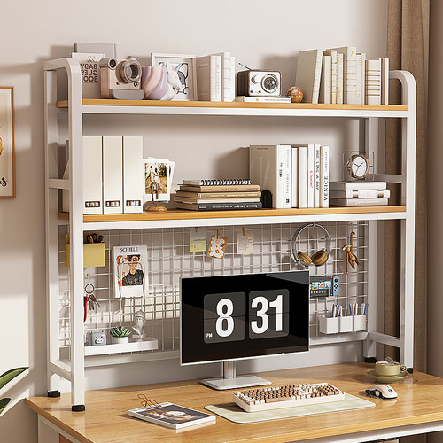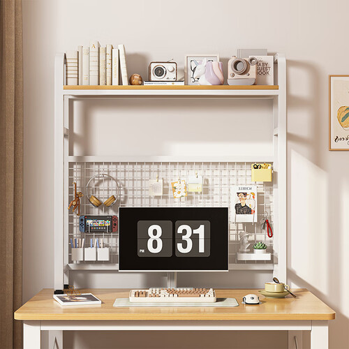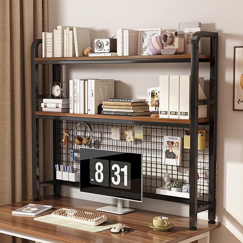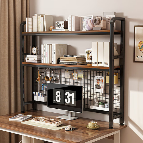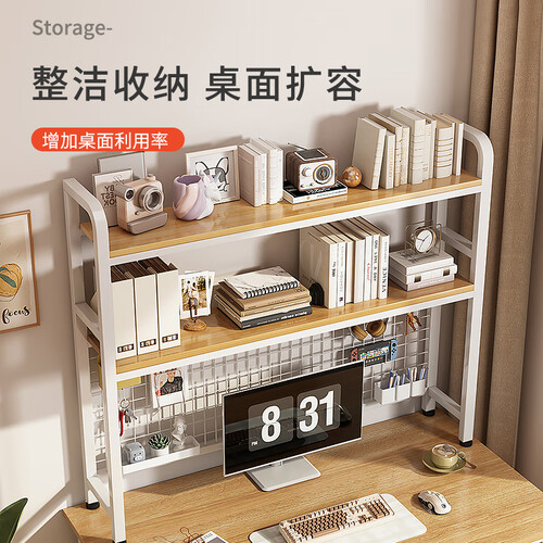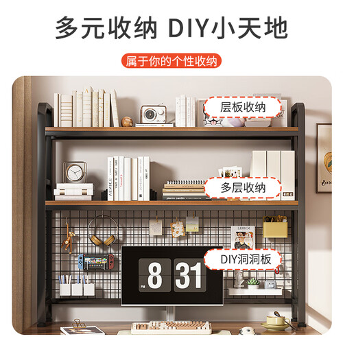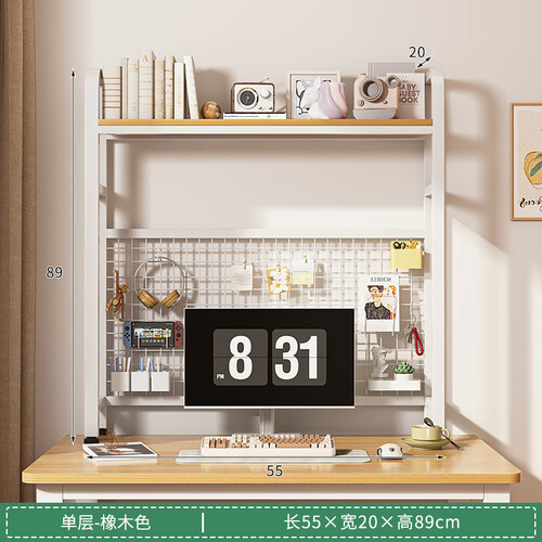 富禾桌面书架简约桌上置物架办公储物架饰物架电脑桌一体书架子 【单层】橡木色55cm
