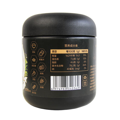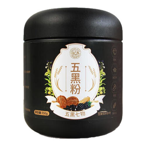 良农嫁稻五黑杂粮粉 冲饮即食代餐粉 黑芝麻黑米黑豆黑花生黑麦片核桃桑葚 五黑七物 更多营养 350g*1罐