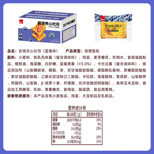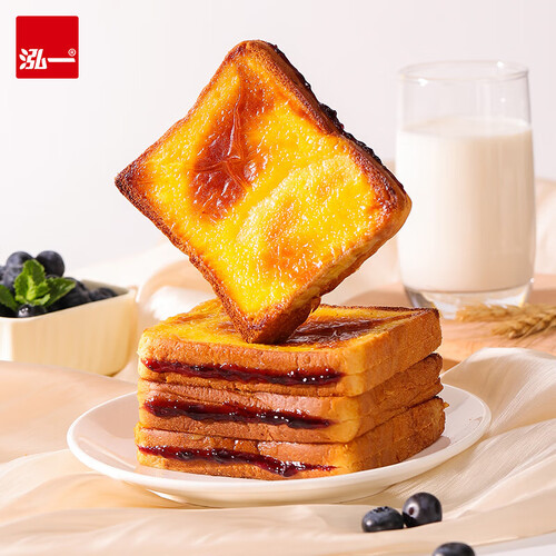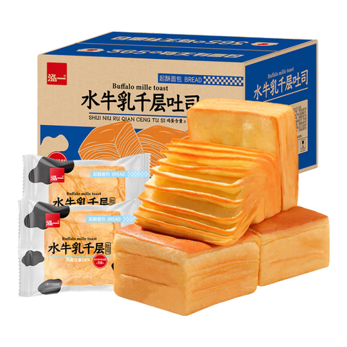 泓一水牛乳黄油千层吐司 蓝莓岩烧300g【5包】 四箱 早餐面包 无蔗糖 高钙手撕 休闲零食品