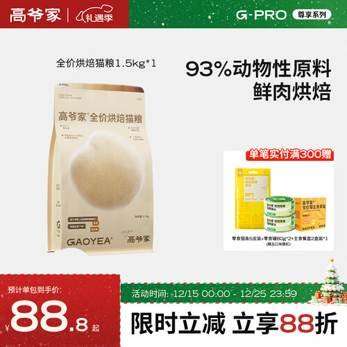高爷家全价烘焙猫粮 添加益生元&后生元酶解鸡肉 成猫幼猫 G 烘焙粮1.5kg