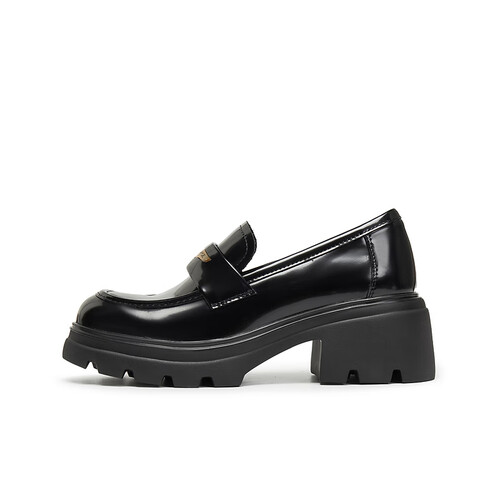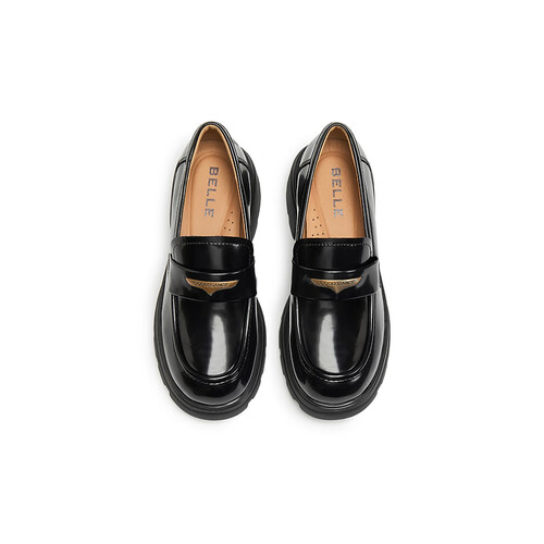 百丽女鞋乐福鞋女英伦小皮鞋25秋新通勤单鞋JD007CM5 黑色-亮面 35
