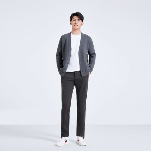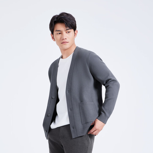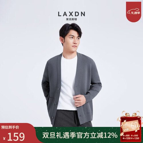 莱克斯顿【商场同款】男装春季新款休闲通勤针织衫外套男毛衣衫男 灰蓝 S
