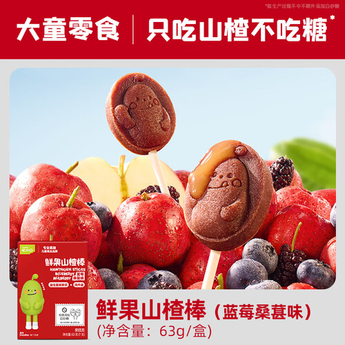 英氏 山楂棒棒糖蓝莓味鸡内鲜果打浆63g休闲解馋儿童零食饭后当季鲜果
