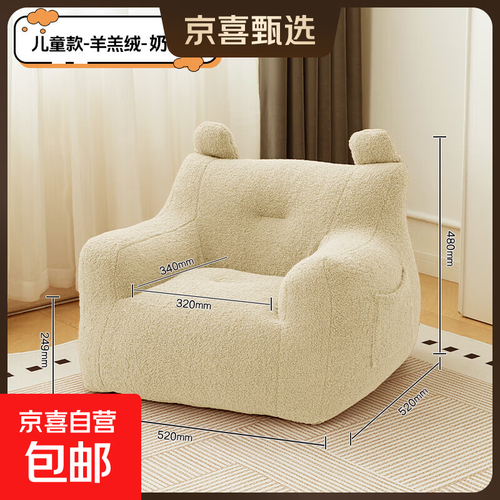 【京喜甄选】儿童沙发小熊房间阅读角儿童宝宝可爱懒人小沙发座椅 儿童款-奶白色-羊羔绒