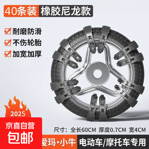 - 电动车轮胎防滑链两轮三轮四轮摩托车雪地牛筋防滑链条冬季通用型 【电动车防滑链】黑色40根【适用4个轮子】