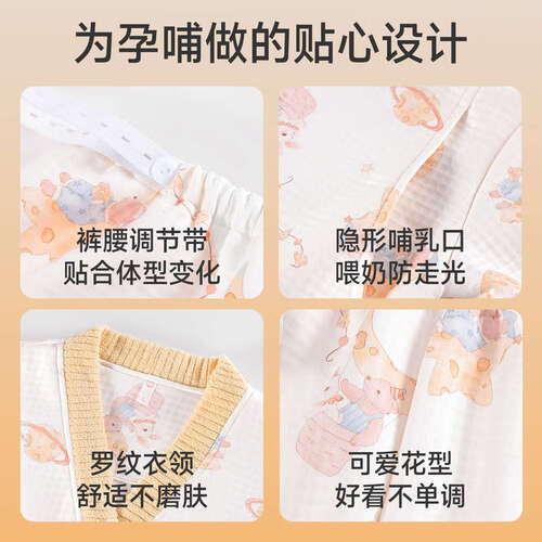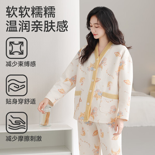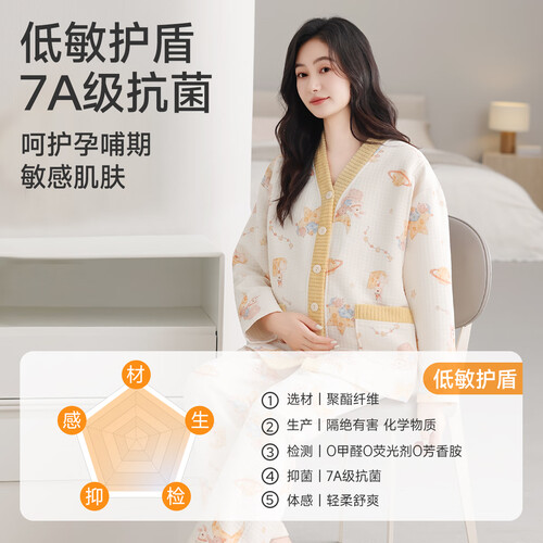婧麒(JOYNCLEON)空气层月子服加厚孕妇睡衣保暖月子服产妇哺乳家居服女 星球兔 L