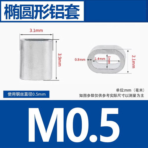 固万基 钢丝绳用铝夹头双孔8字型铝套单孔八字椭圆铝套卡扣M0.5/1/2/3/20紧固件大全 椭圆单孔 M0.5[200个]