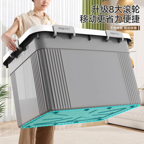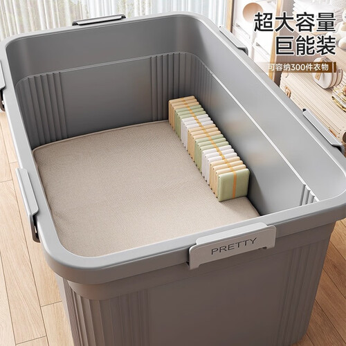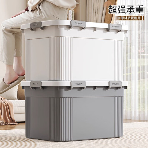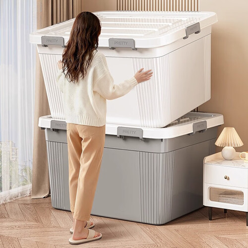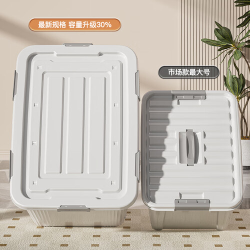 纳份爱收纳箱塑料家用加厚加大容量超大号储物箱衣服被子玩具整理专用箱 45#L小号 象牙白-【49*34*27.5cm】4扣4轮 1个装【加大加厚 品质升级】