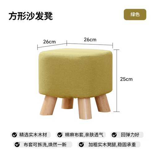 - 家逸(JIAYI) 实木布艺小凳子沙发脚凳换鞋凳小矮凳穿鞋软坐凳四腿户外休闲凳 绿色方形