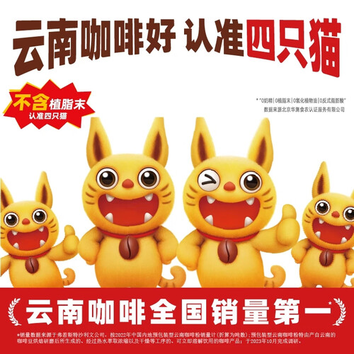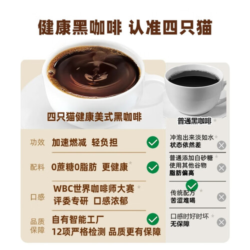 四只猫咖啡【25年日期】美式纯黑咖啡粉0蔗糖0脂 运动健身燃减促销 2g*30条 限时促销】高山黑咖啡30杯
