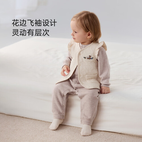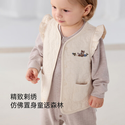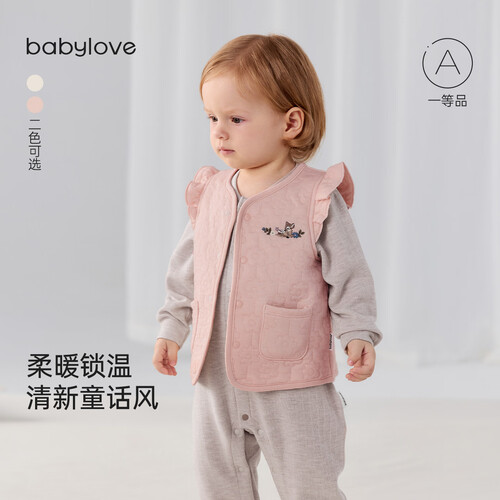 babylove女宝宝马甲秋冬婴儿薄夹棉保暖背心外出时尚飞袖纯棉坎肩 白杏米 66