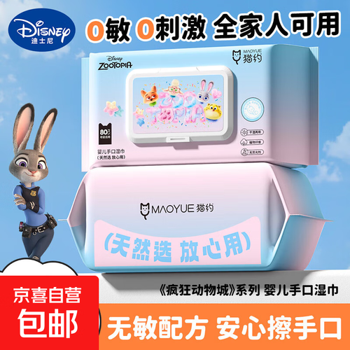 疯狂动物城纯水湿巾加厚无添加母婴品质不掉毛絮化妆棉 厚款 2包 160抽