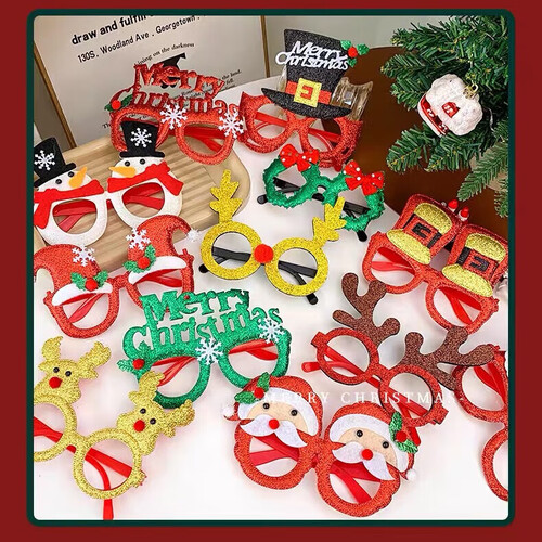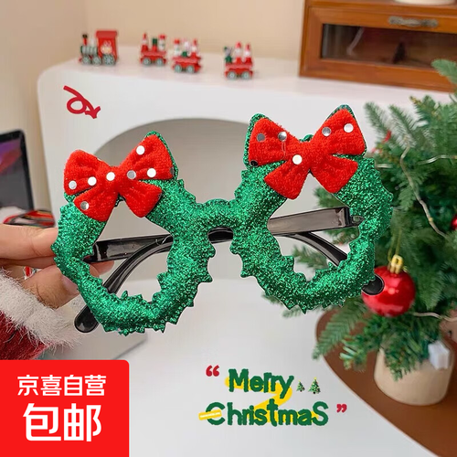 圣诞节装饰眼镜框搞怪麋鹿礼品学生装扮礼品可爱卡通氛围装饰眼镜 蝴蝶结