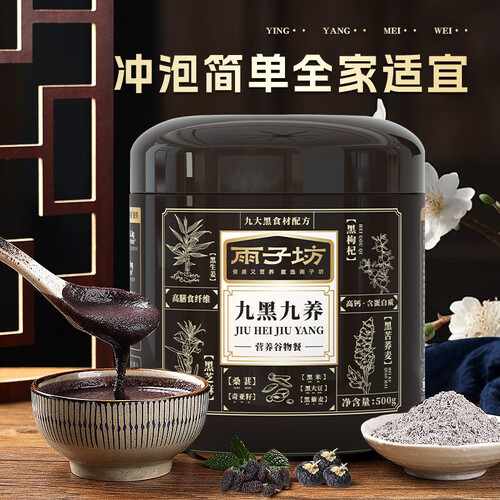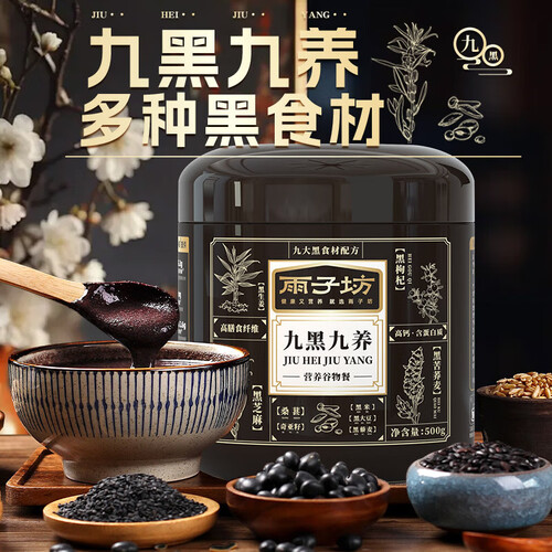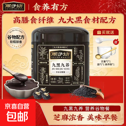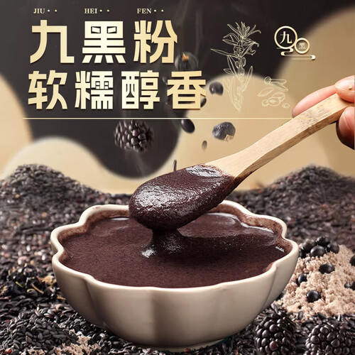 - 九黑九养粉芝麻枸杞核桃黑豆粉谷物早餐500g罐装官方旗舰店 【3罐装+碗勺三件套】