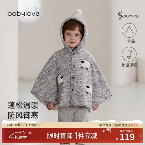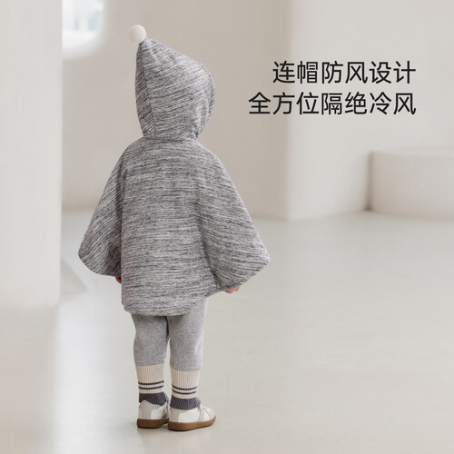babylove宝宝夹棉披风冬季保暖衣服连帽斗篷婴幼儿百搭外套冬装 中花灰 均码 (尺寸40*71cm-建议0-3岁宝宝)
