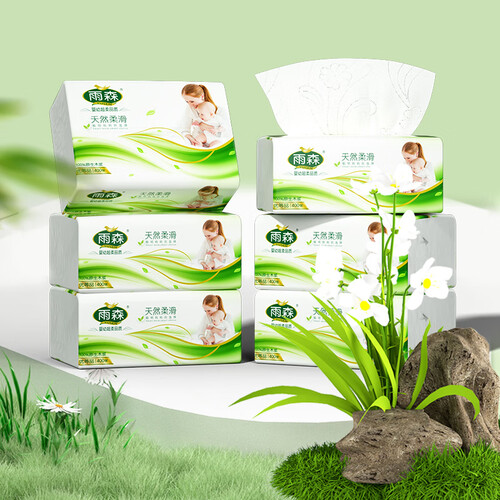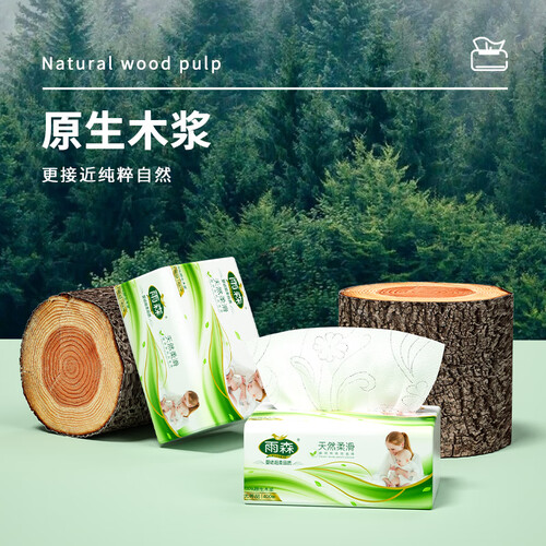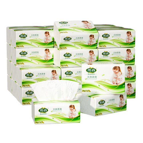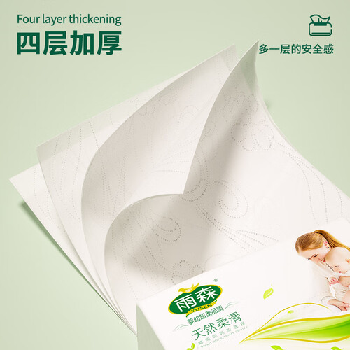 雨森妇婴抽纸母婴适用100%原生木桨家用纸抽4层加厚可湿水纸巾卫生纸 4层 100抽*6包 【热销款】